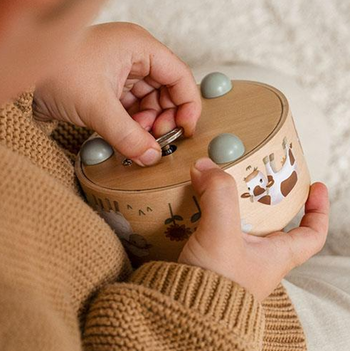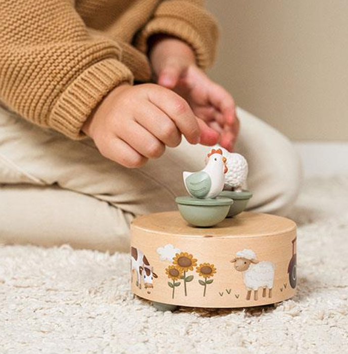 Carillon in legno/musicale/stimolante del brand Little Dutch della collezione Little Farm. Il colore dominante è beige/multicolore con animali .
