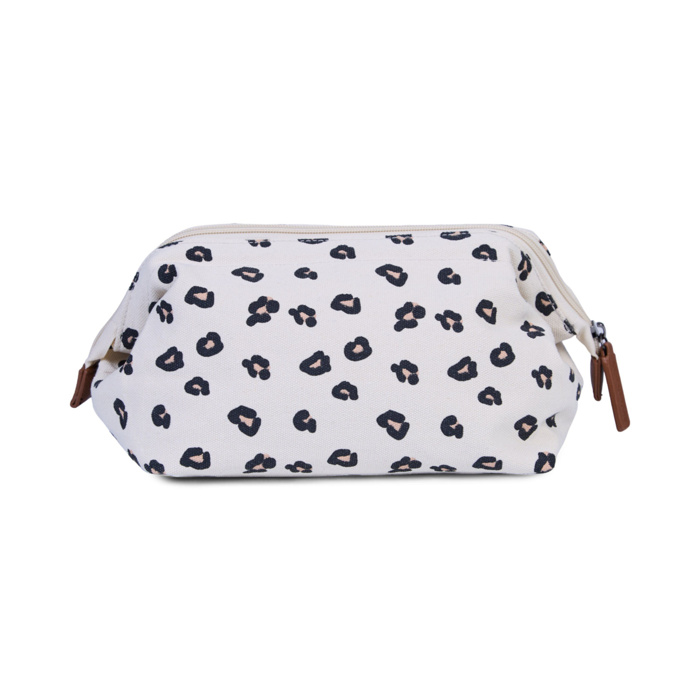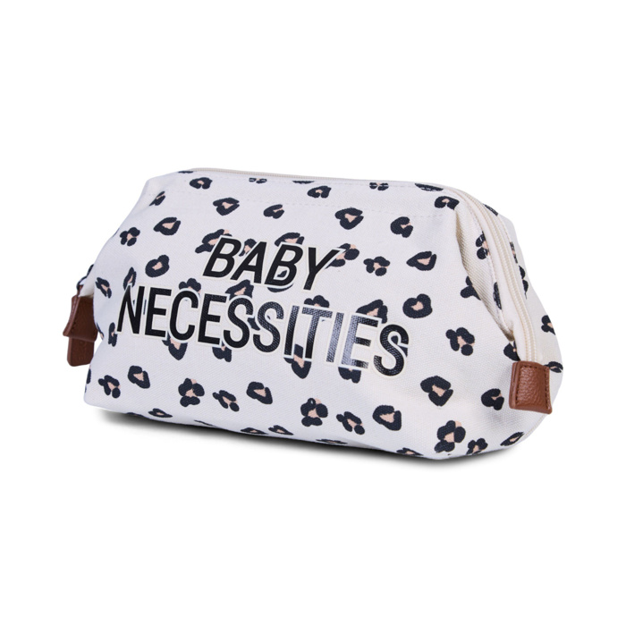 Zaino e borsa funzionale Beauty del brand Childhome . Il colore dominante è bianco/marrone/nero Leopard .