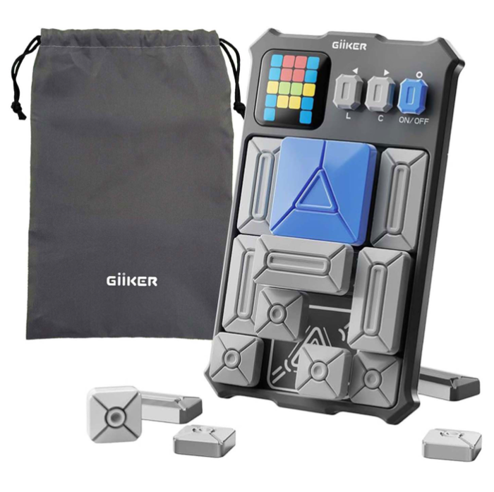 Gioco elettronico stimolante Super Slide del brand GiiKER . Il colore dominante è grigio/blu .