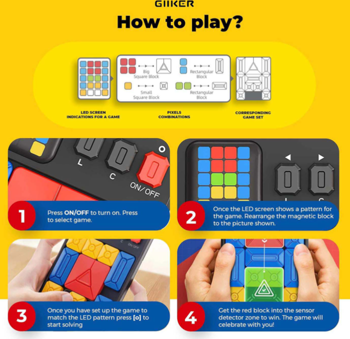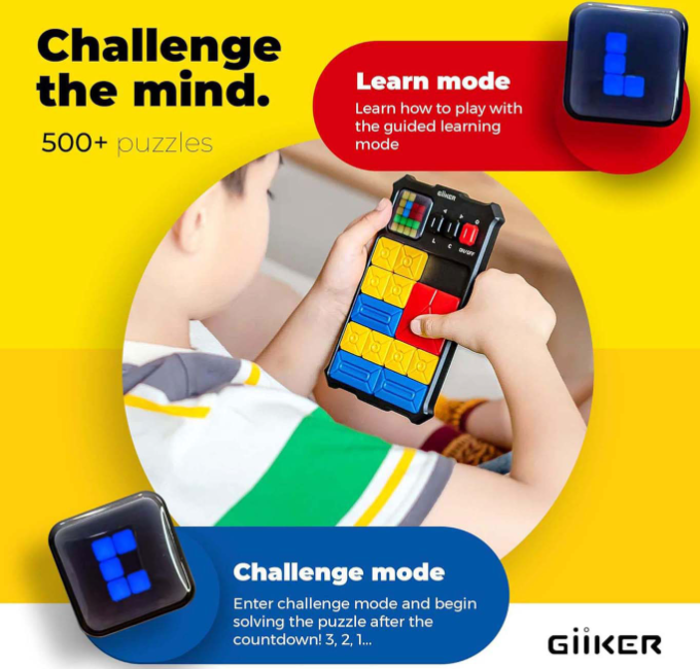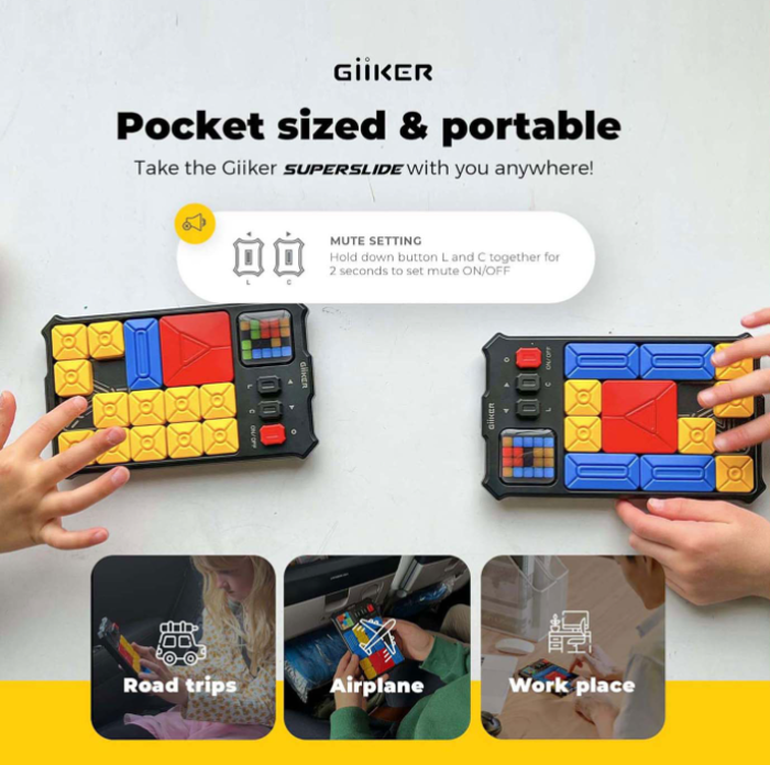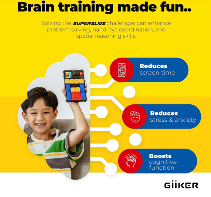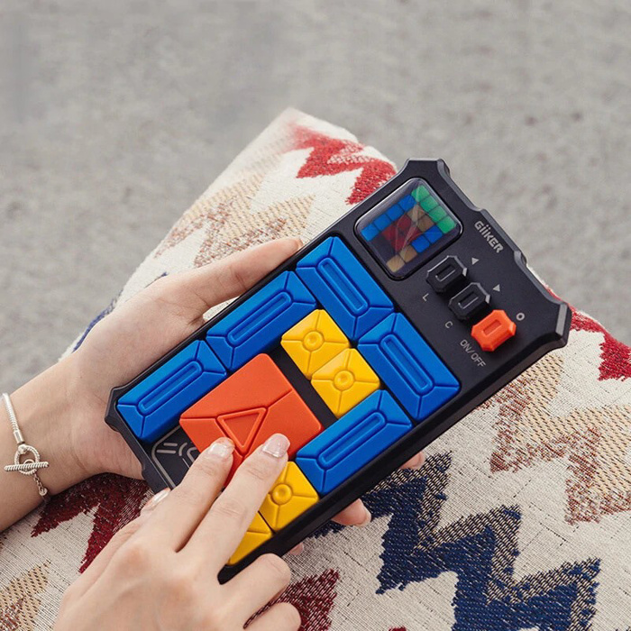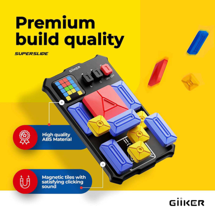 Gioco elettronico stimolante Super Slide del brand GiiKER . Il colore dominante è nero/multicolore .