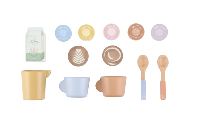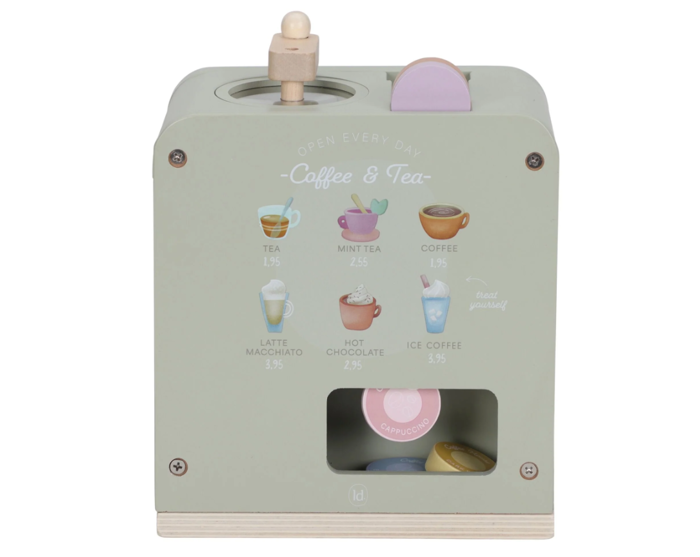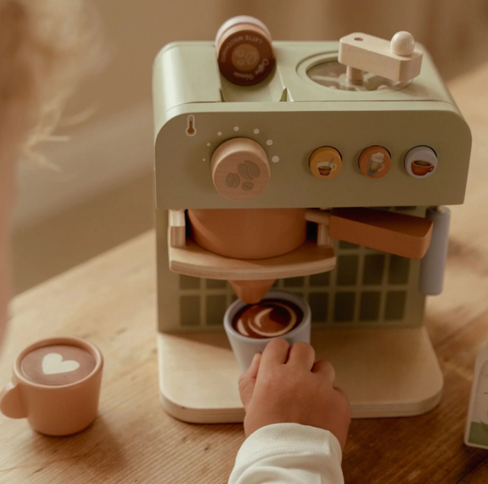 Gioco in legno con accessori/stimolante Macchina del caffè del brand Little Dutch . Il colore dominante è beige/verde/multicolore .