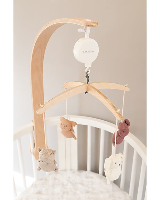 Giostrina girevole/musicale/soffice Animal Friends del brand Bamboom . Il colore dominante è bianco/multicolore .
