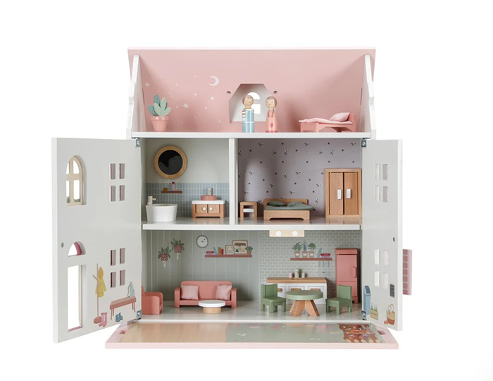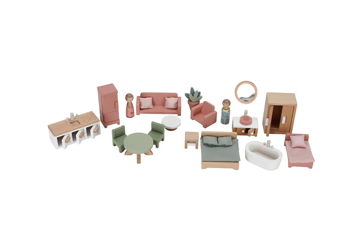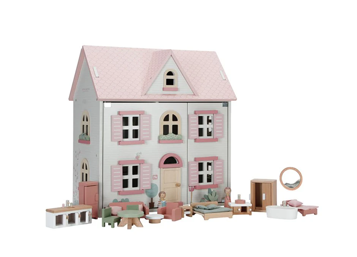 Gioco in legno con personaggi/con accessori/stimolante Casa delle Bambole del brand Little Dutch . Il colore dominante è rosa .