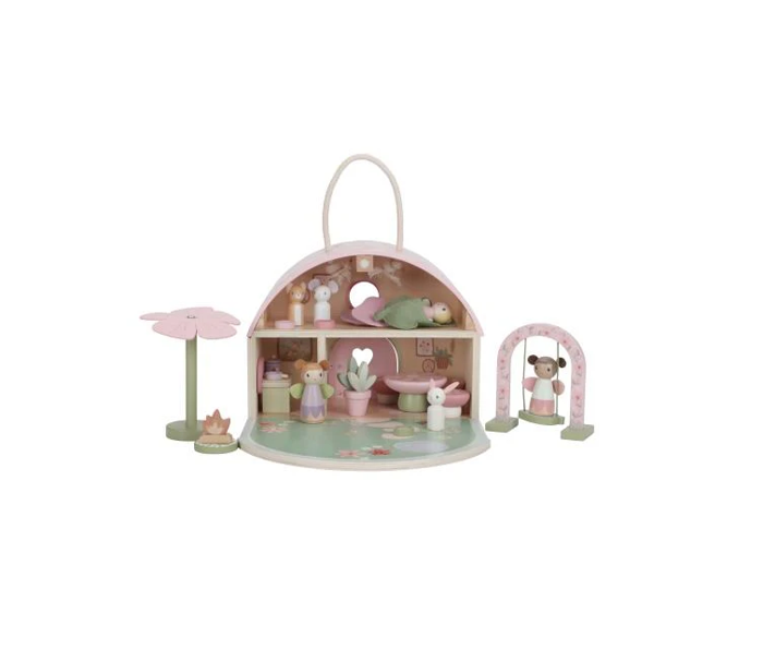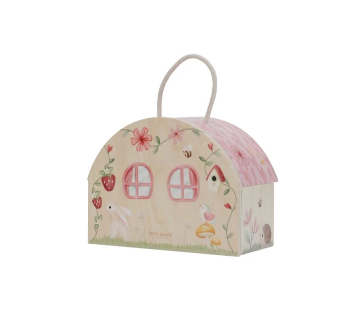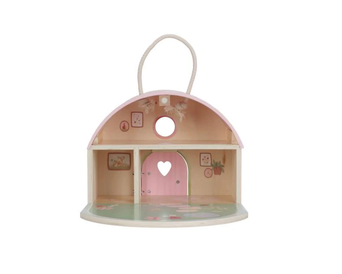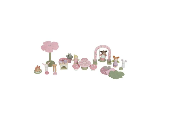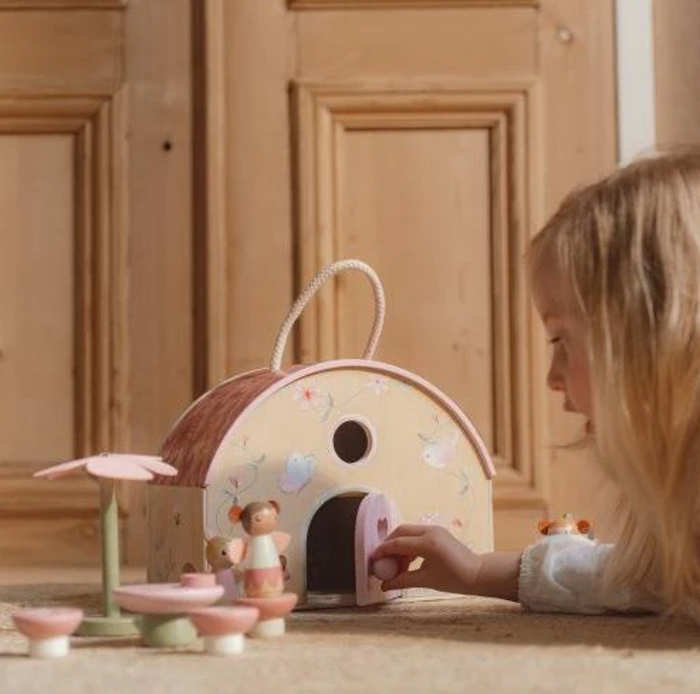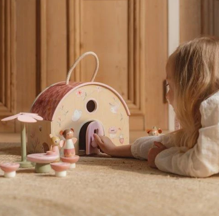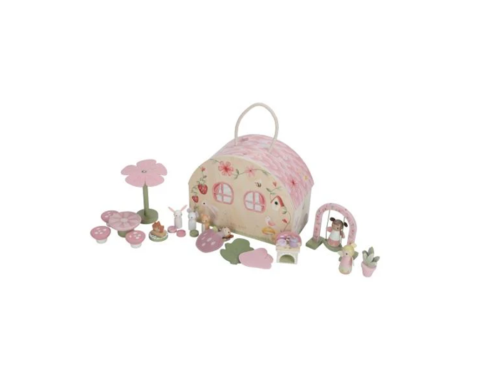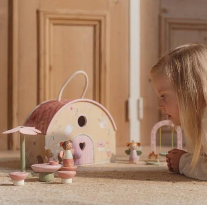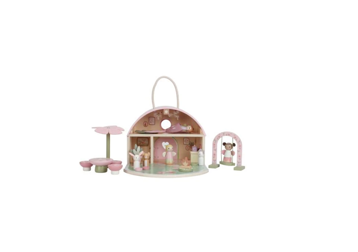 Gioco in legno con apertura del brand Little Dutch della collezione Fairy Garden. Il colore dominante è marrone/rosa/multicolore con fatine .