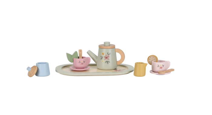 Gioco in legno con accessori/capiente/stimolante Tea set del brand Little Dutch . Il colore dominante è rosa/multicolore .