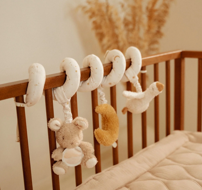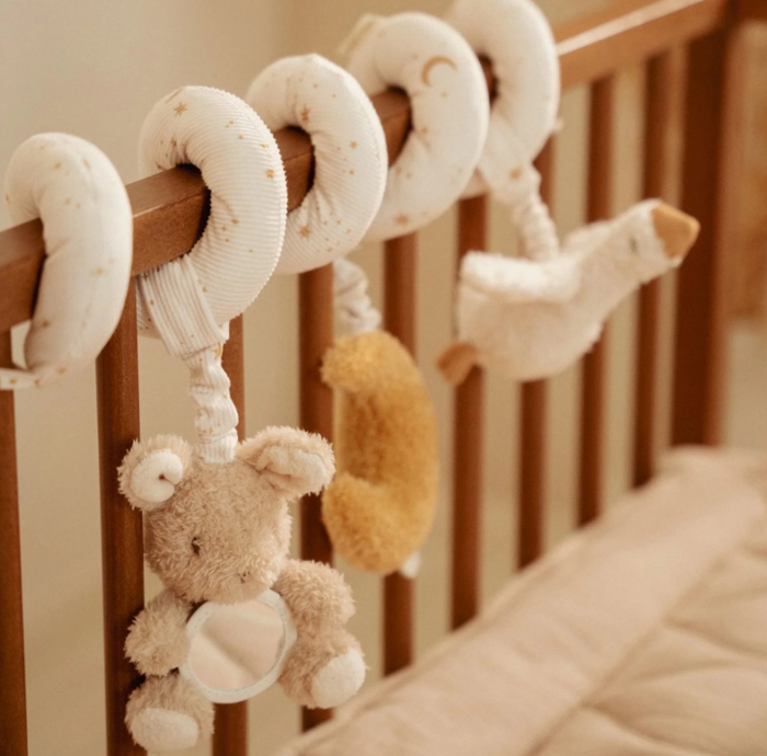 Gioco morbido stimolante/soffice/con personaggi/con personaggi Spirale multiattività del brand Little Dutch . Il colore dominante è avorio .
