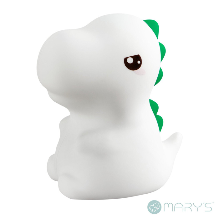 Lampada notturna in silicone/con un tocco cambia il colore della luce/ricaricabile T-Rex del brand Mary's . Il colore dominante è bianco/verde con dinosauri .
