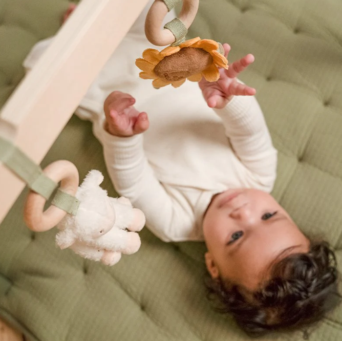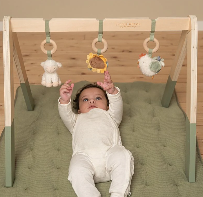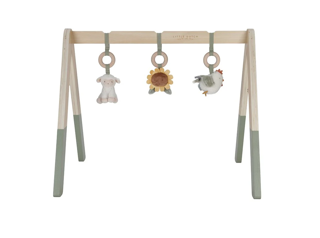 Palestrina stimolante/con peluche/in legno del brand Little Dutch della collezione Little Farm. Il colore dominante è multicolore/verde .