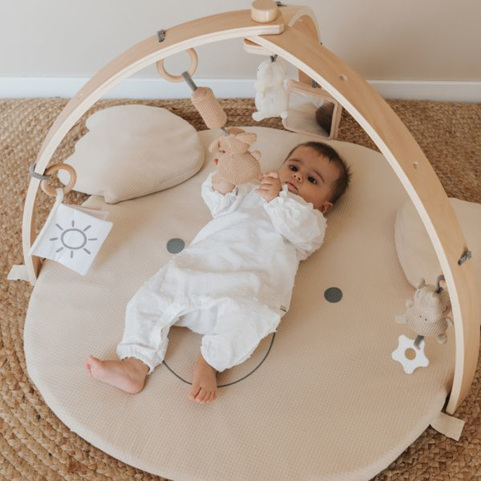 Palestrina stimolante/confortevole/con personaggi Tulips del brand Bamboom . Il colore dominante è rosa antico .