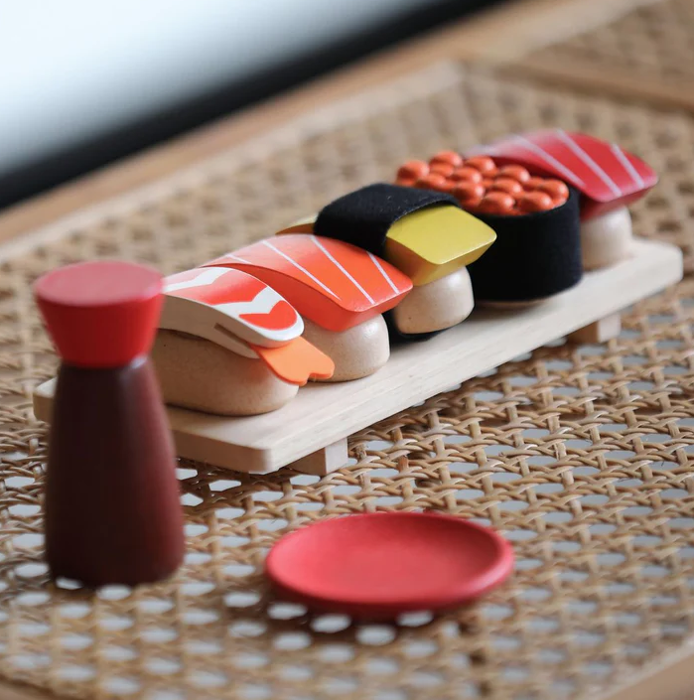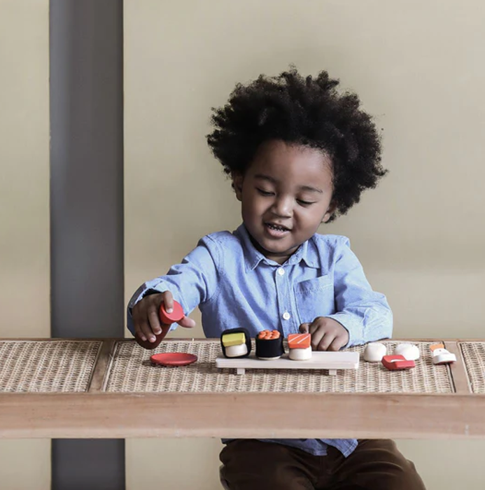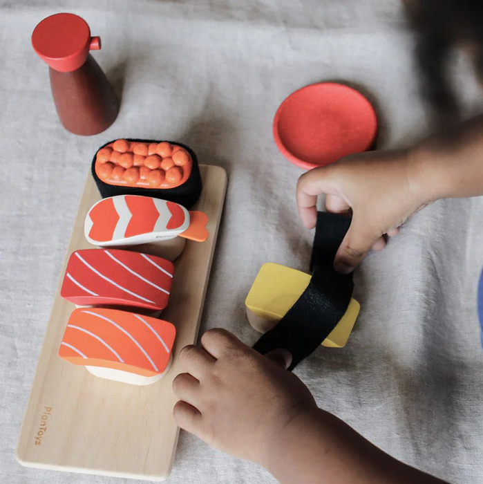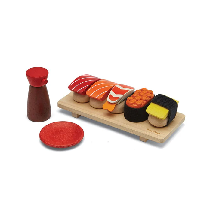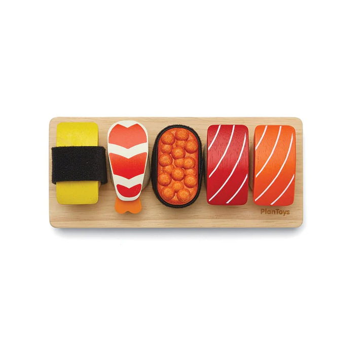 Gioco in legno sostenibile/stimolante/con accessori Sushi Set del brand PlanToys . Il colore dominante è multicolore .